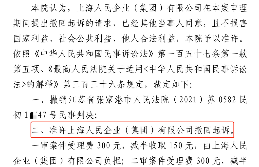 天津胜诉佳讯 | 人民企业系列案苏州六案上海人民公司撤诉