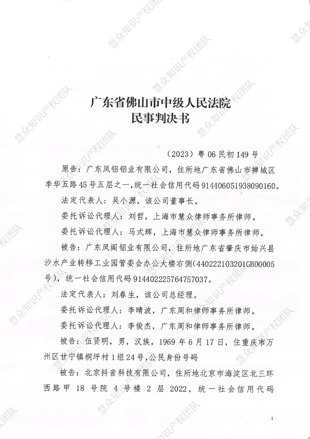 天津判赔800万!辉知队代理“凤铝”商标维权案胜诉